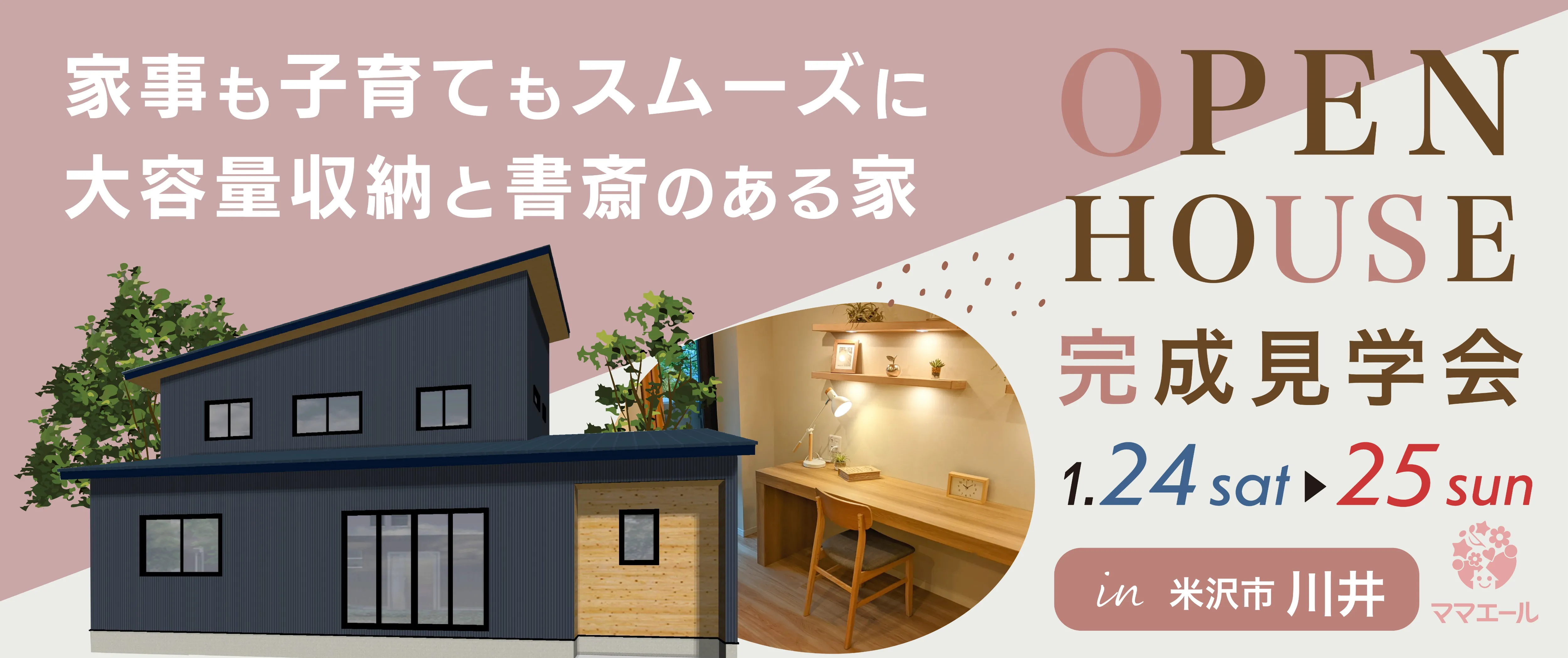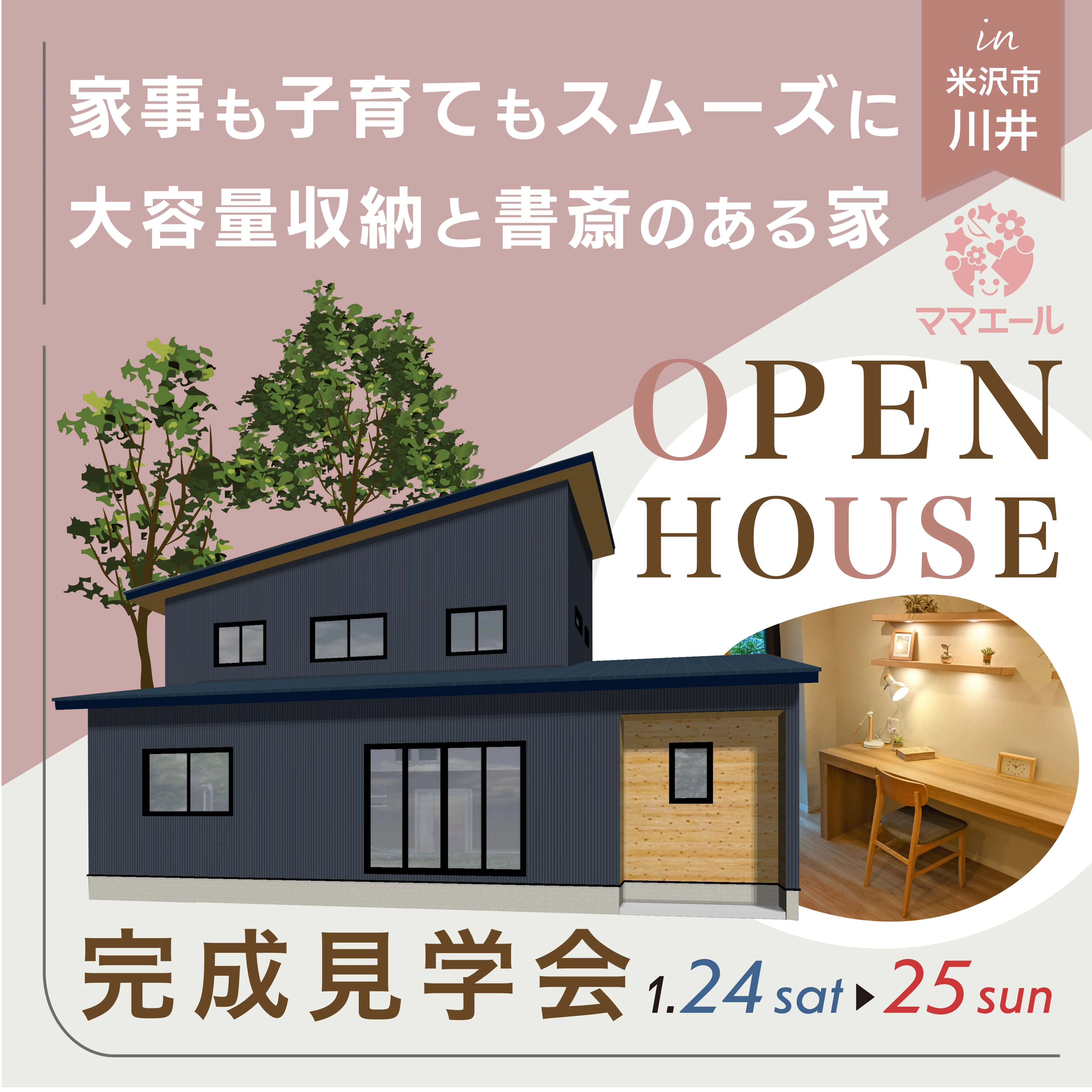 家事も子育てもスムーズに。大容量収納と書斎のある家【完全予約制】