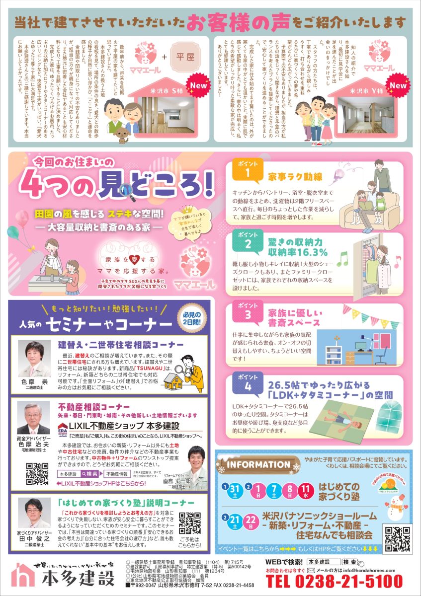 連絡先 本多建設 TEL.0238-21-5100